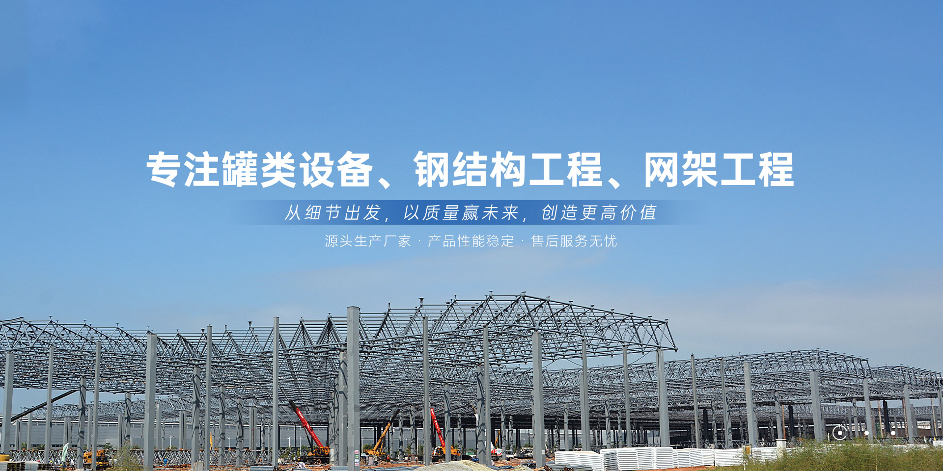 各式罐類設備、鋼結構工程、網架工程的設計、制作、安裝為一體